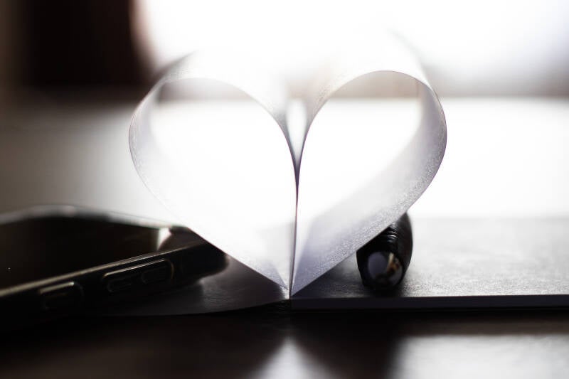 Here, love takes the shape of a heart made from pages — simple, fragile, and infinite at once.